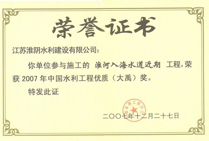2006年度獲“中國(guó)建筑工程魯班獎(jiǎng)”;2007年獲“中國(guó)水利工程優(yōu)質(zhì)(大禹)獎(jiǎng)”;2009年獲“新中國(guó)成立六十周年百項(xiàng)經(jīng)典暨精品工程”獎(jiǎng)。