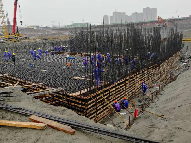 因?yàn)樗こ痰奶厥庑?,通呂運(yùn)河水利樞紐工程必須在5月底主汛期來(lái)臨前完成水下部分施工,實(shí)現(xiàn)通水目標(biāo),搶抓工期成為貫穿整個(gè)施工過(guò)程的關(guān)鍵詞。自開(kāi)工以來(lái),現(xiàn)場(chǎng)最多的天氣便是下雨,據(jù)統(tǒng)計(jì),自12月以來(lái),雨水天氣達(dá)51天。為了確保通水目標(biāo)按期實(shí)現(xiàn),以及年底前完成主體工程計(jì)劃任務(wù),在連續(xù)下雨、前期因清淤困難減緩了施工進(jìn)度等不利情況下,自主體基坑開(kāi)挖后,項(xiàng)目部便開(kāi)始積極組織工人加班加點(diǎn),沒(méi)有過(guò)絲毫的放松和懈怠,在參建各方的一致努力下,最終將原計(jì)劃于2月25日澆筑的泵站底板提前到了2月16日實(shí)施,從而為后續(xù)施工爭(zhēng)取到了更多的機(jī)動(dòng)時(shí)間。目前節(jié)制閘1#、2#、3#底板及泵站已澆筑完成,待泵站工程搶出地面后,最后澆筑節(jié)制閘4#底板,進(jìn)而完成主體基面以下部分施工。目前現(xiàn)場(chǎng)施工人員接近三百人,我們搶抓有利天氣,有序進(jìn)行土方、管樁、水泥攪拌樁、主體結(jié)構(gòu)鋼筋、模板等平行施工作業(yè),工作面全面展開(kāi),后續(xù)總體施工進(jìn)度已處于可控狀態(tài),我們向著順利完成水下驗(yàn)收的目標(biāo)又邁出了堅(jiān)實(shí)有力的一步。